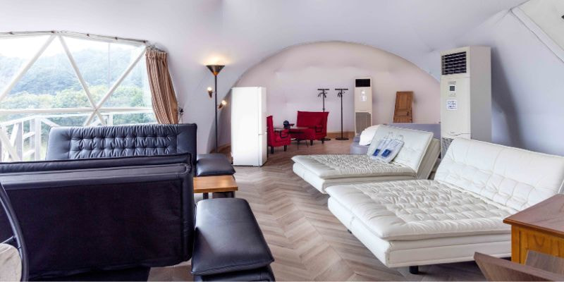 | 広さ | 大型テント:室内55㎡ ミドルドーム(ゲストルーム):室内19㎡ × 2棟 |